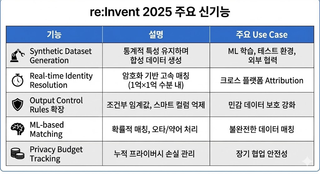 AWS re:Invent 2025에서 발표된 Clean Rooms의 새로운 기능들은 단순한 개선이 아니라, 데이터 협업의 가능성을 한 단계 더 확장하는 혁신입니다.