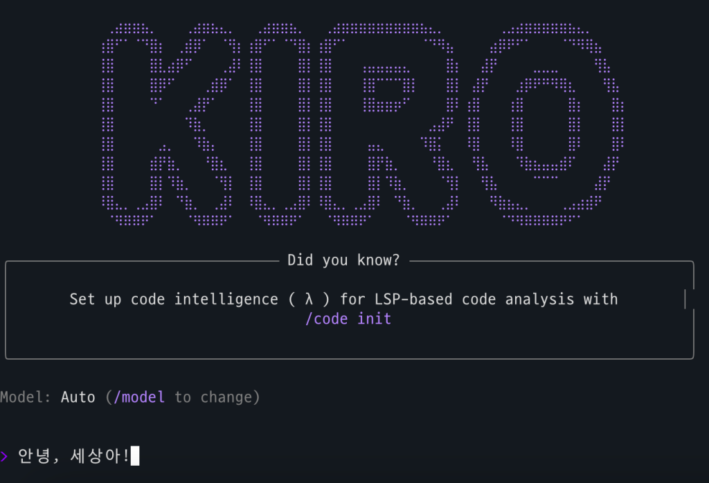 이제 Kiro의 강력한 AI 에이전트를 IDE뿐만아니라 터미널에서 이용할 수 있습니다. Kiro CLI는 IDE와 비슷한 환경(Steering files, MCP 설정)을 제공하여, 터미널 창 안에서도 기능 구현부터 버그 추적, 워크플로우 자동화까지 끊김 없는 인터랙티브 루프를 만들수 있습니다.